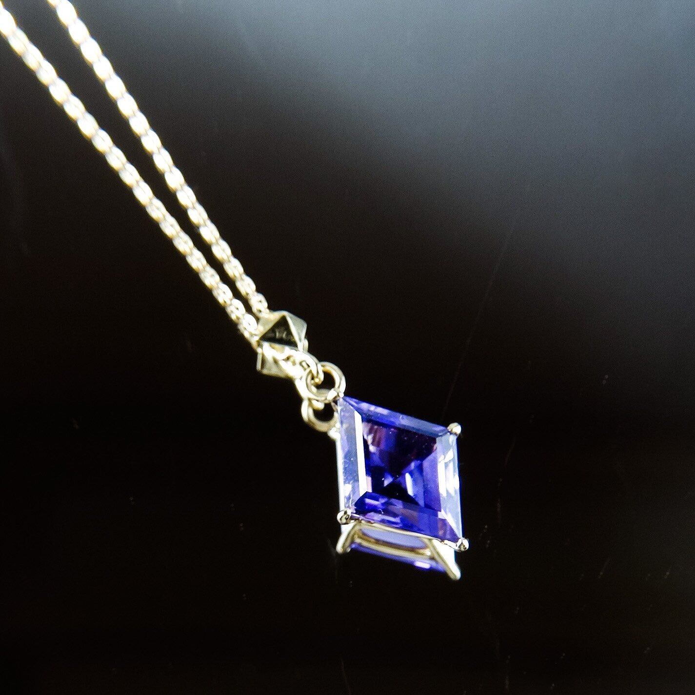 贅沢に一粒を菱形にカットしたアメシストを使用したネックレス。